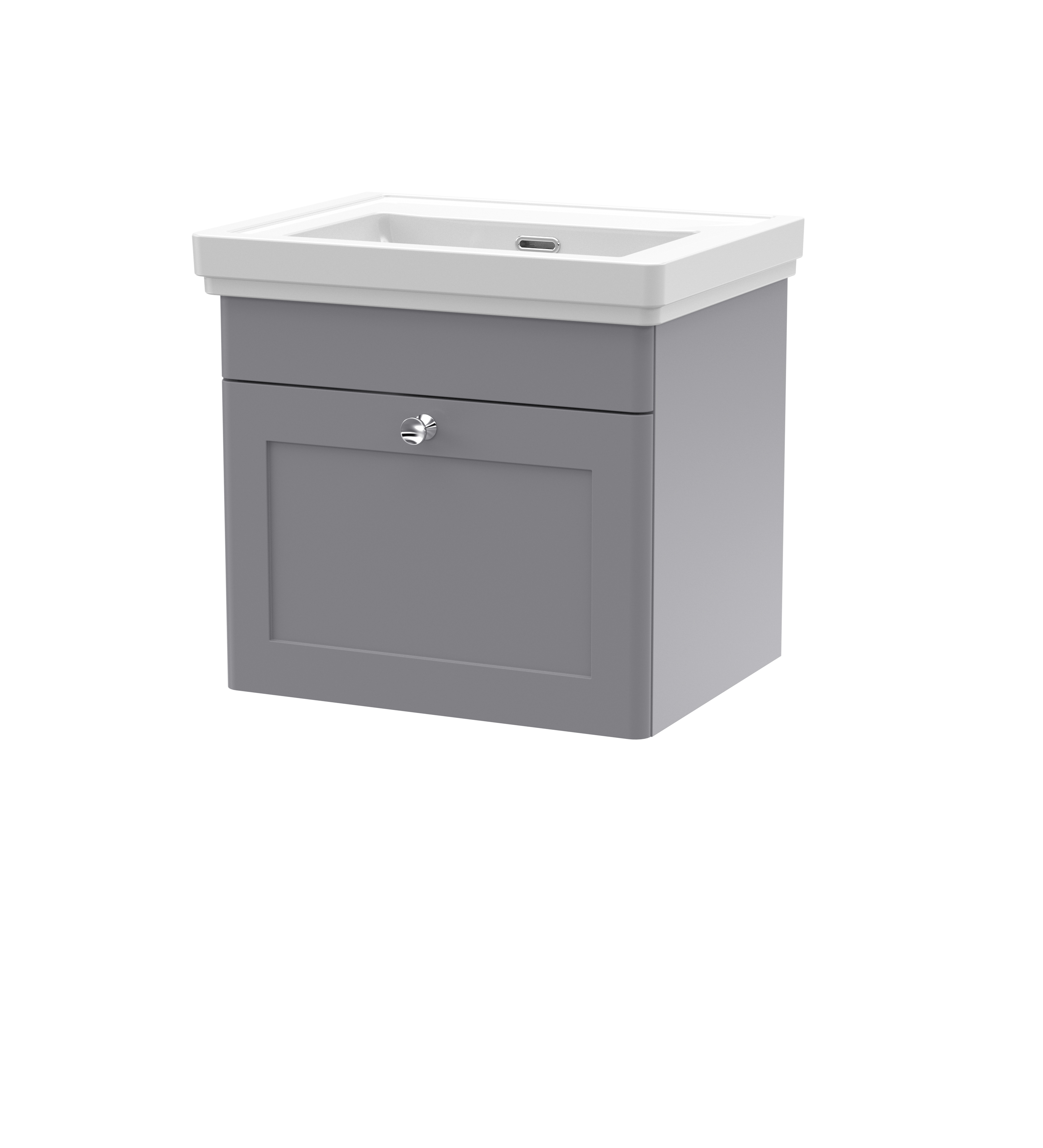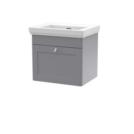 nuie Classique Wall Hung 1 Drawer Unit & 0 Tap Hole Fireclay Basin, 500mm - Satin Grey