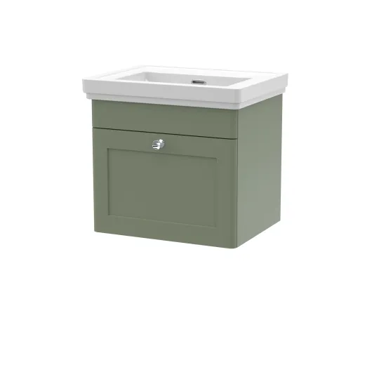 nuie Classique Wall Hung 1 Drawer Unit & 0 Tap Hole Fireclay Basin, 500mm - Satin Green