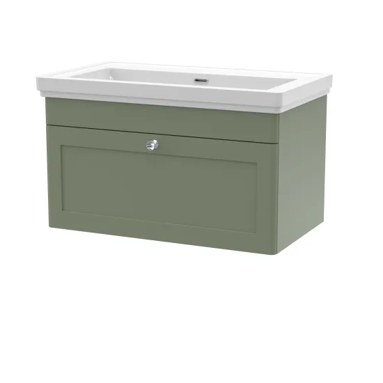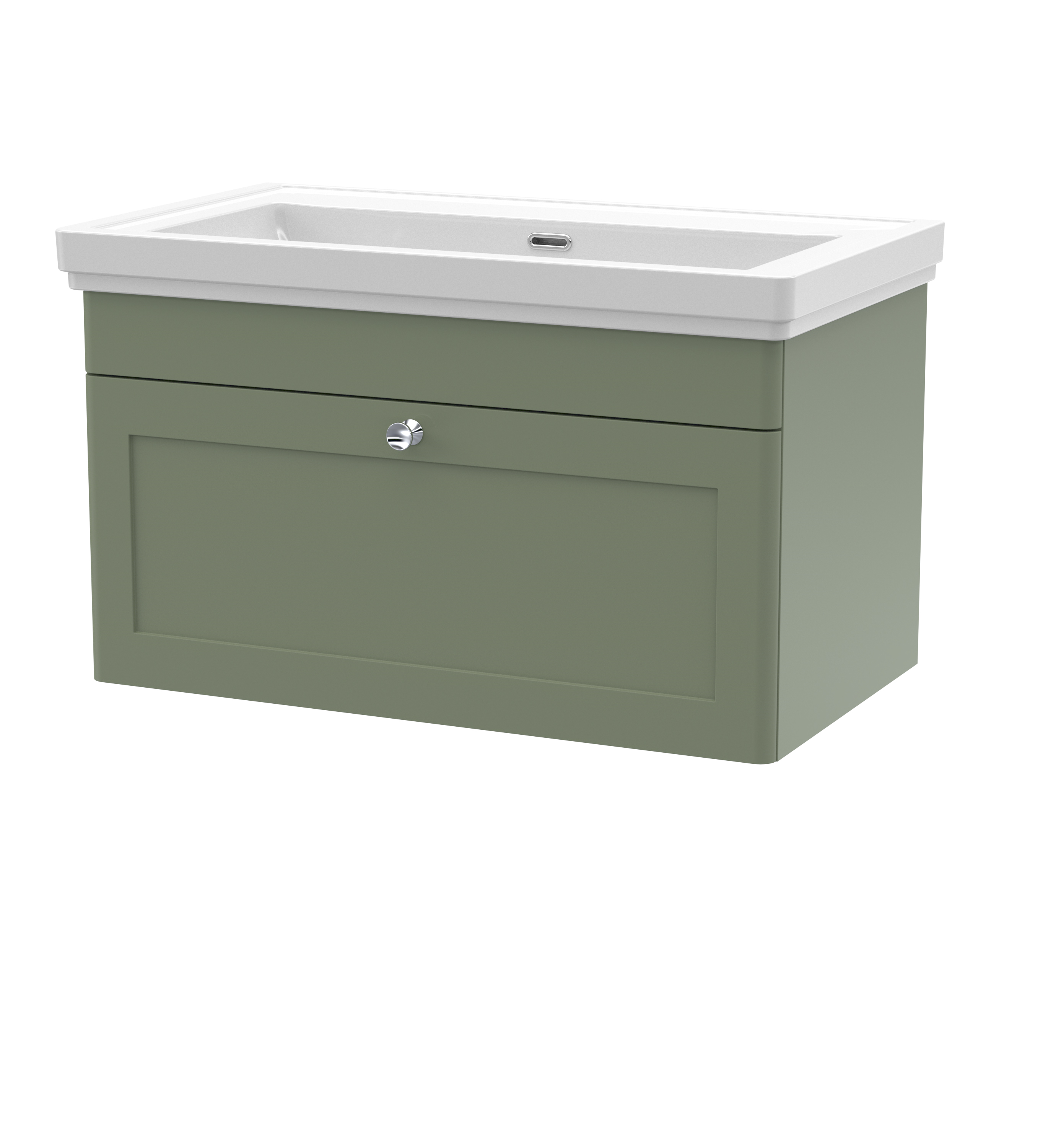 nuie Classique Wall Hung 1 Drawer Unit & 0 Tap Hole Fireclay Basin, 800mm - Satin Green