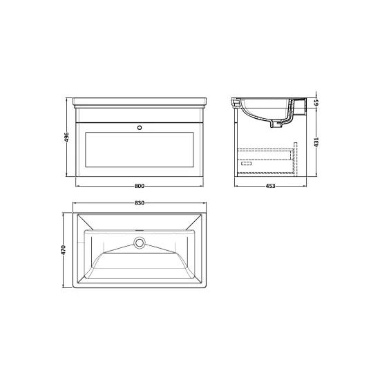 Classique Wall Hung 1 Drawer Unit & 0 Tap Hole Fireclay Basin, 800mm