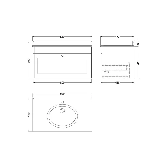 Minimum quantity for "Classique Wall Hung 1 Drawer Unit & 1 Tap Hole Marble Top with Oval Basin, 800mm" is 1.