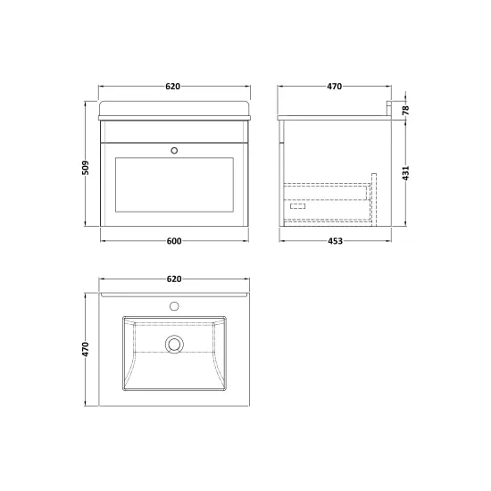 Minimum quantity for "Classique Wall Hung 1 Drawer Unit & 1 Tap Hole Marble Top with Square Basin, 600mm" is 1.