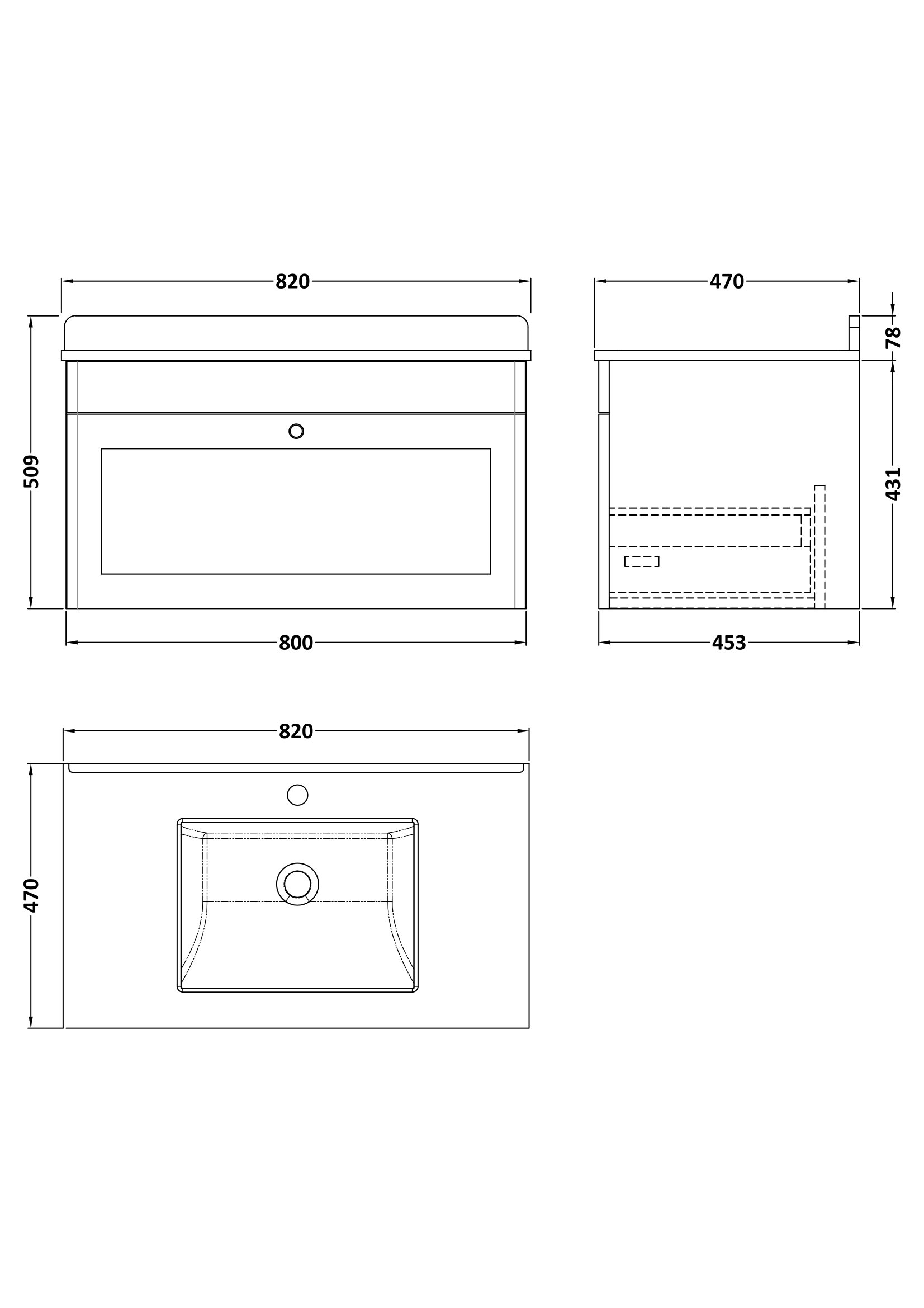 Classique Wall Hung 1 Drawer Unit & 1 Tap Hole Marble Top with Square Basin, 800mm