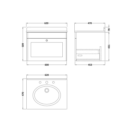 Minimum quantity for "Classique Wall Hung 1 Drawer Unit & 3 Tap Hole Marble Top with Oval Basin, 600mm" is 1.