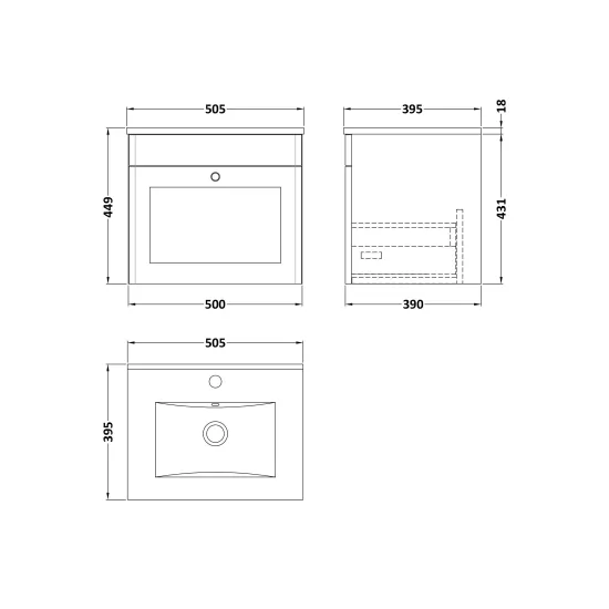 Classique Wall Hung 1 Drawer Unit & Minimalist Ceramic Basin, 500mm