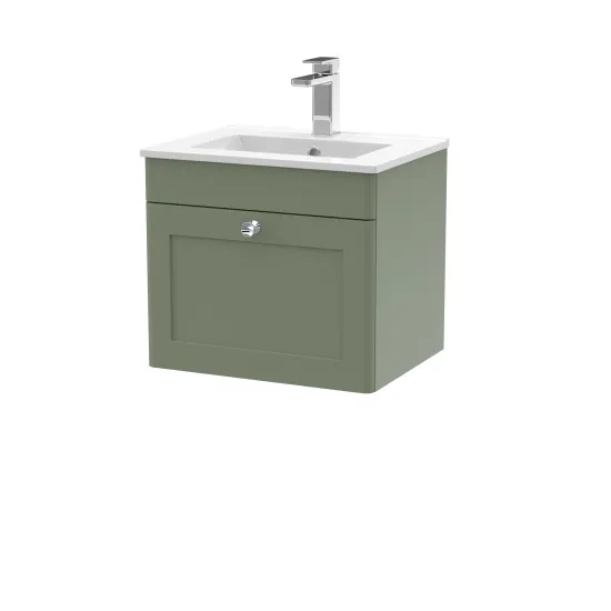 nuie Classique Wall Hung 1 Drawer Unit & Minimalist Ceramic Basin, 500mm - Satin Green