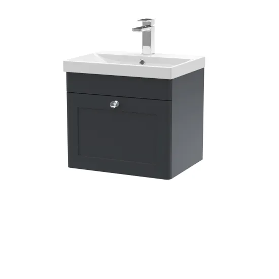nuie Classique Wall Hung 1 Drawer Unit & Thin-Edge Ceramic Basin, 500mm - Satin Anthracite