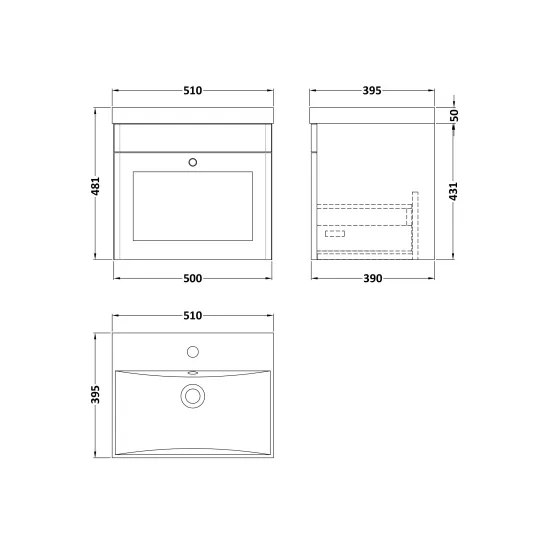 Minimum quantity for "Classique Wall Hung 1 Drawer Unit & Thin-Edge Ceramic Basin, 500mm" is 1.