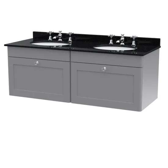 nuie Classique Wall Hung 2 Drawer Unit & 3 Tap Hole Marble Top with Oval Basin, 1200mm - Satin Grey/Black