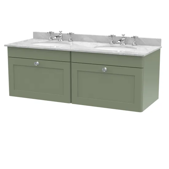 nuie Classique Wall Hung 2 Drawer Unit & 3 Tap Hole Marble Top with Oval Basin, 1200mm - Satin Green/Grey