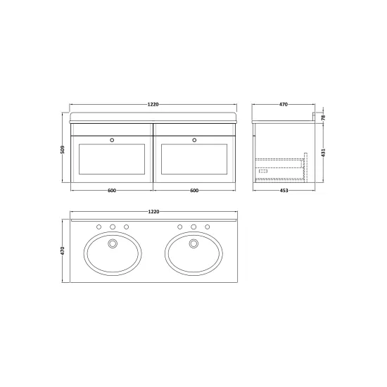 Minimum quantity for "Classique Wall Hung 2 Drawer Unit & 3 Tap Hole Marble Top with Oval Basin, 1200mm" is 1.