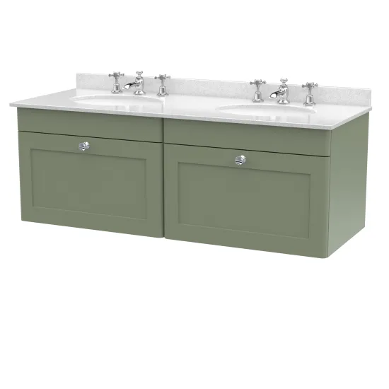 nuie Classique Wall Hung 2 Drawer Unit & 3 Tap Hole Marble Top with Oval Basin, 1200mm - Satin Green/White