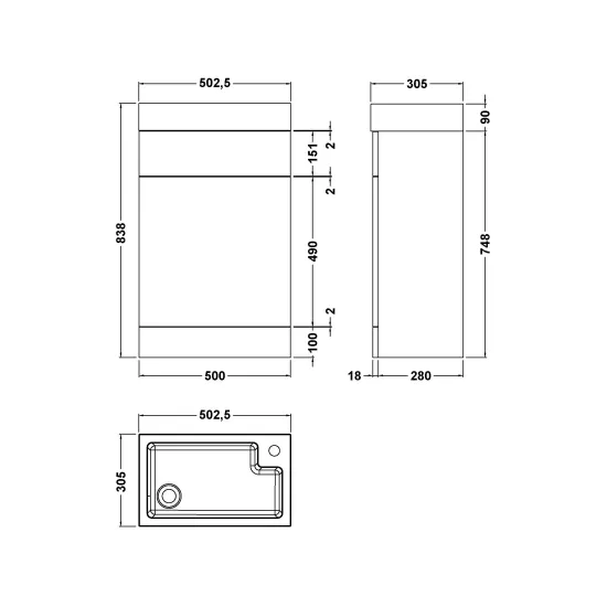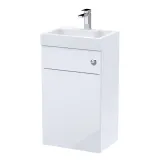 This sleek gloss white finish compliments any modern bathroom to create a designer look. This 2 in 1 unit makes the most of the smallest of rooms and creates more space in your bathroom. Supplied with cabinet,basin and concealed cistern. Pan, seat and tap sold separately.