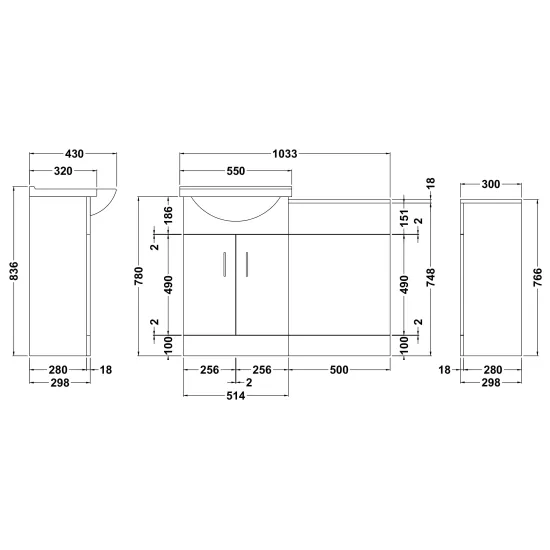 Cloakroom Pack Floor Standing Saturn Furniture Pack with Square Basin