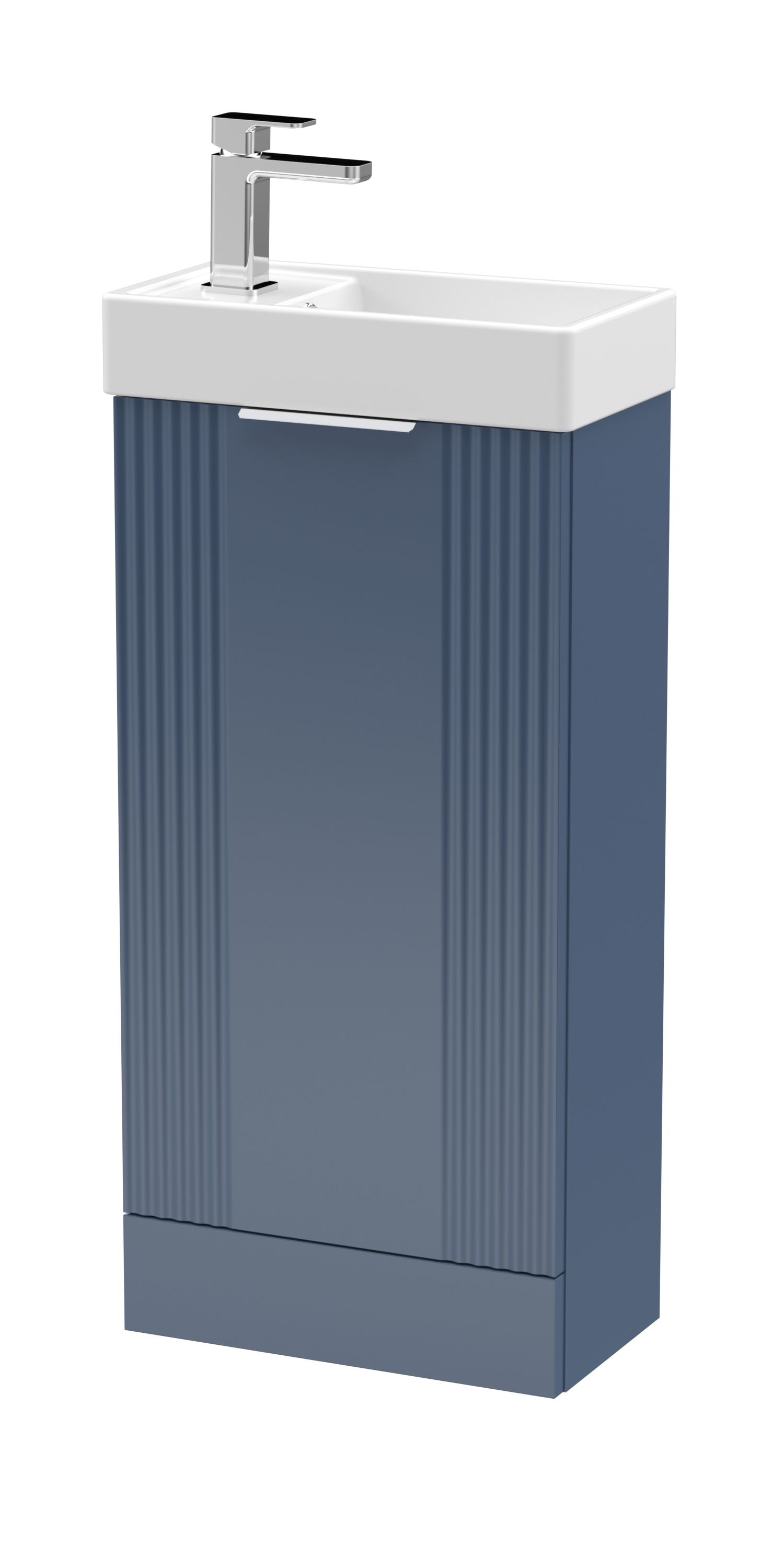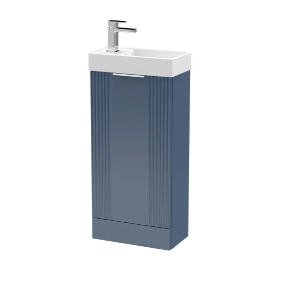 nuie Deco Compact Floor Standing 1 Door Vanity Basin Unit & Ceramic Basin, 400mm - Satin Blue