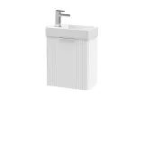 Part fluted design ideal for a striking art deco styled bathroom. This wall hung vanity creates more space in your bathroom giving the illusion of a bigger bathroom. This unit has a soft close door which limits daily wear and tear and provides a quieter closing action. Colour co-ordinate your vanity with a matching WC unit. Supplied with high quality vitreous china basin.