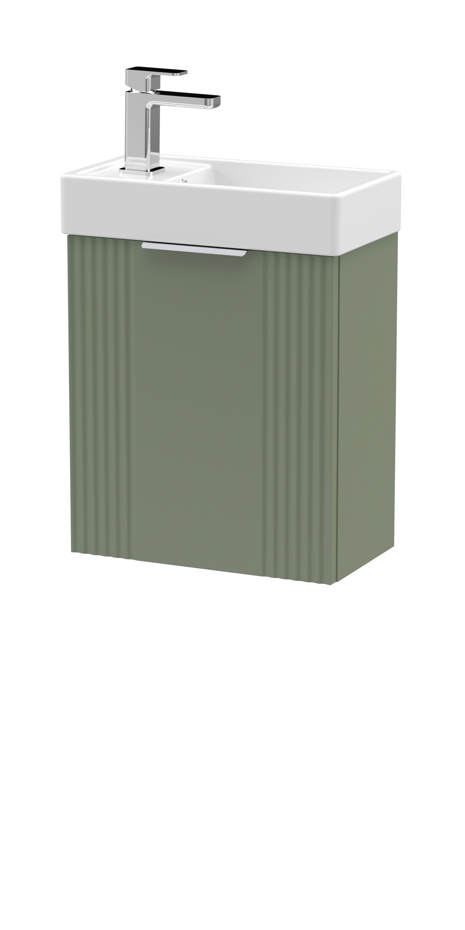 nuie Deco Compact Wall Hung 1 Door Vanity Basin Unit & Ceramic Basin, 400mm - Satin Green