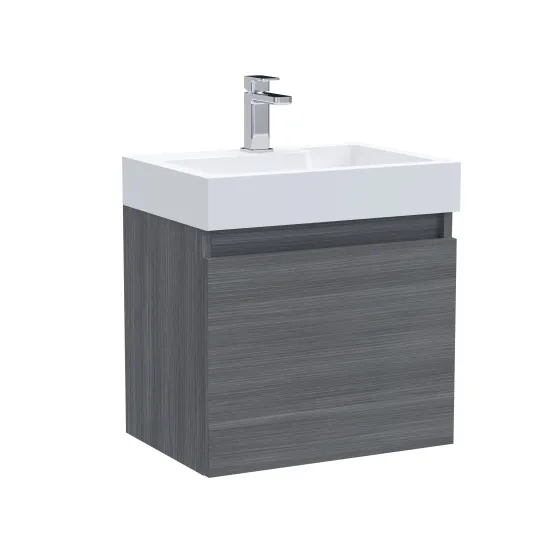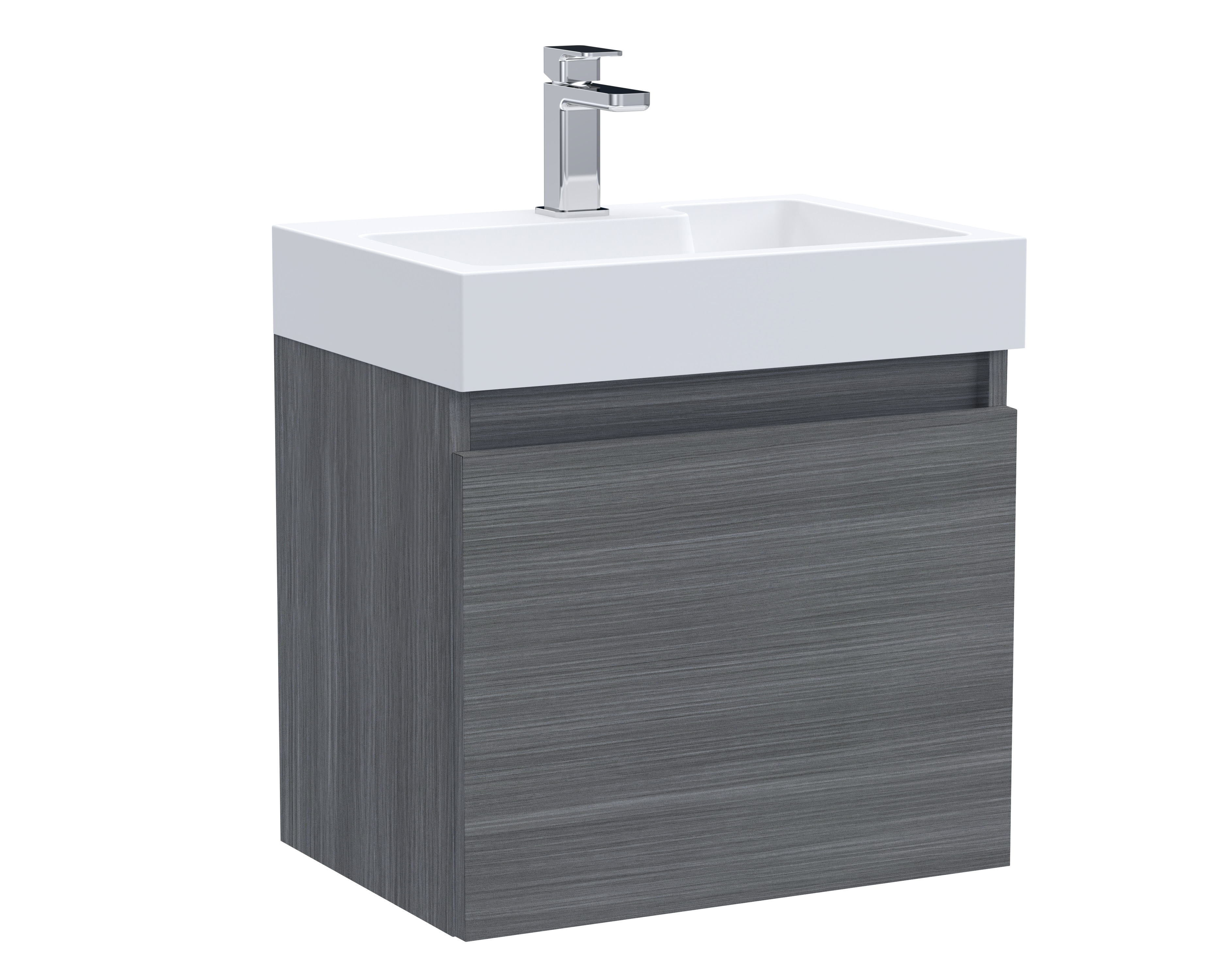 This eye catching anthracite grey finish compliments any modern bathroom to create a designer look. This wall hung vanity creates more space in your bathroom giving the illusion of a bigger bathroom. This unit has a soft close door which limits daily wear and tear and provides a quieter closing action. Colour co-ordinate your vanity with a matching WC unit. Supplied with high quality polymarble basin.