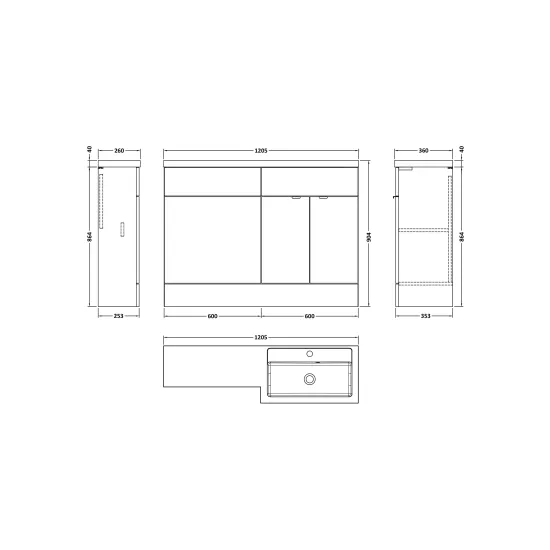 Fusion Floor Standing 2 Door Vanity Basin & WC Right Hand Combination 1200mm