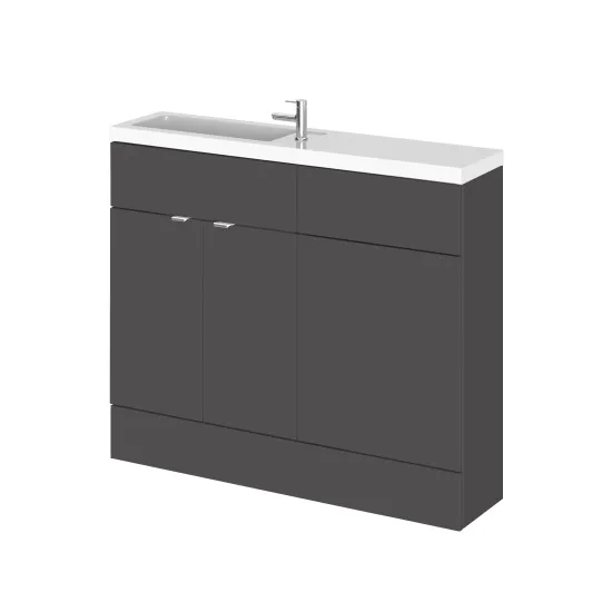 Hudson Reed Fusion Floor Standing 2 Door Vanity Unit & WC Combination Compact 1000mm - Gloss Grey