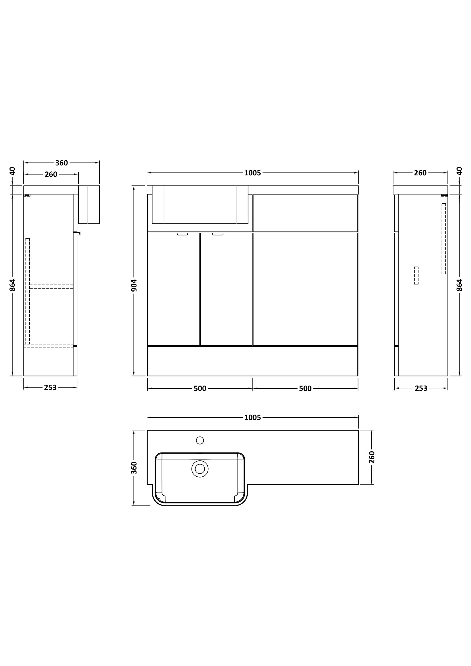 Fusion Floor Standing 2 Door Vanity Unit & WC with Left Hand Semi Recessed Basin Combination 1000mm