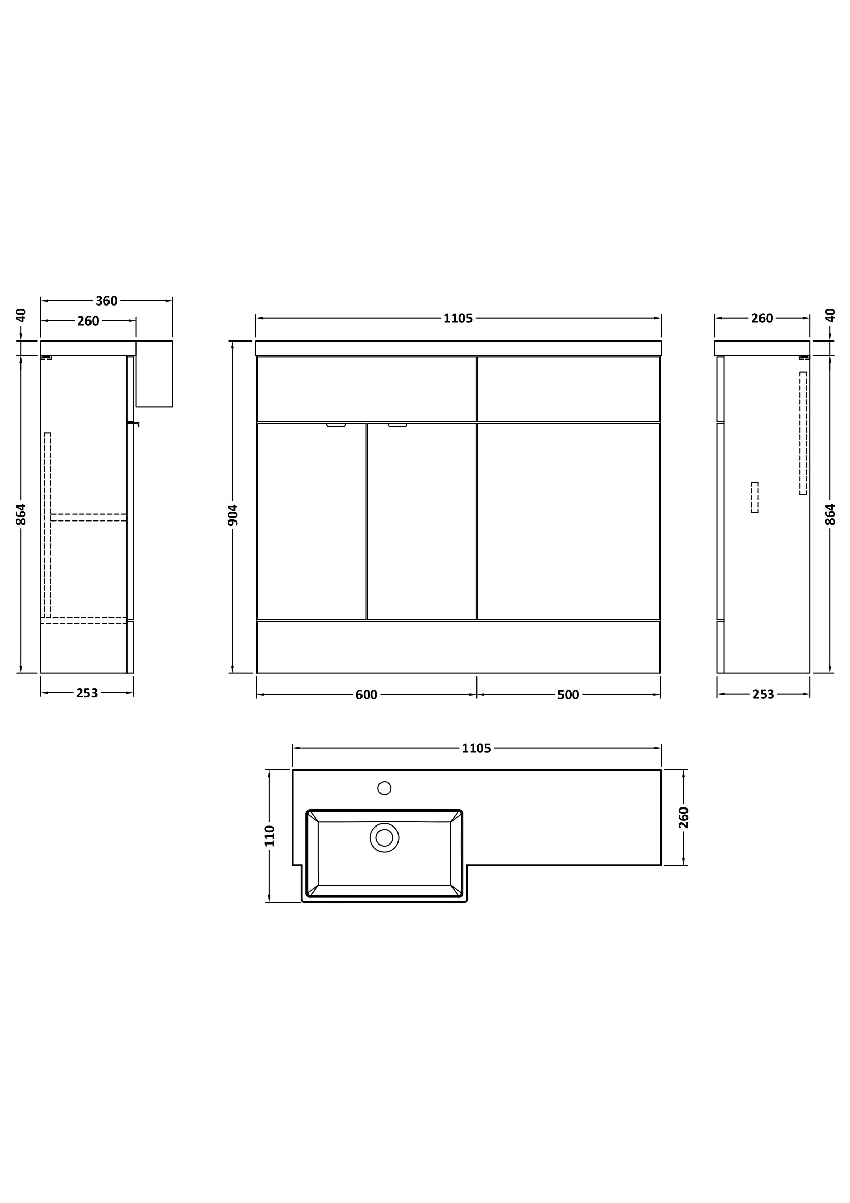Fusion Floor Standing 2 Door Vanity Unit & WC with Left Hand Semi Recessed Basin Combination 1100mm