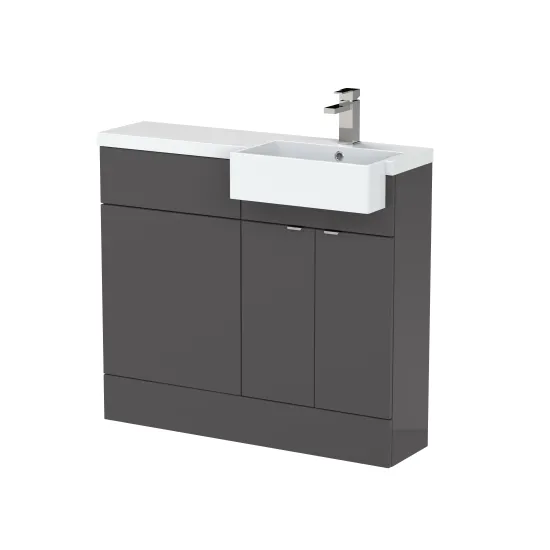 Hudson Reed Fusion Floor Standing 2 Door Vanity Unit & WC with Right Hand Semi Recessed Basin Combination 1000mm - Gloss Grey