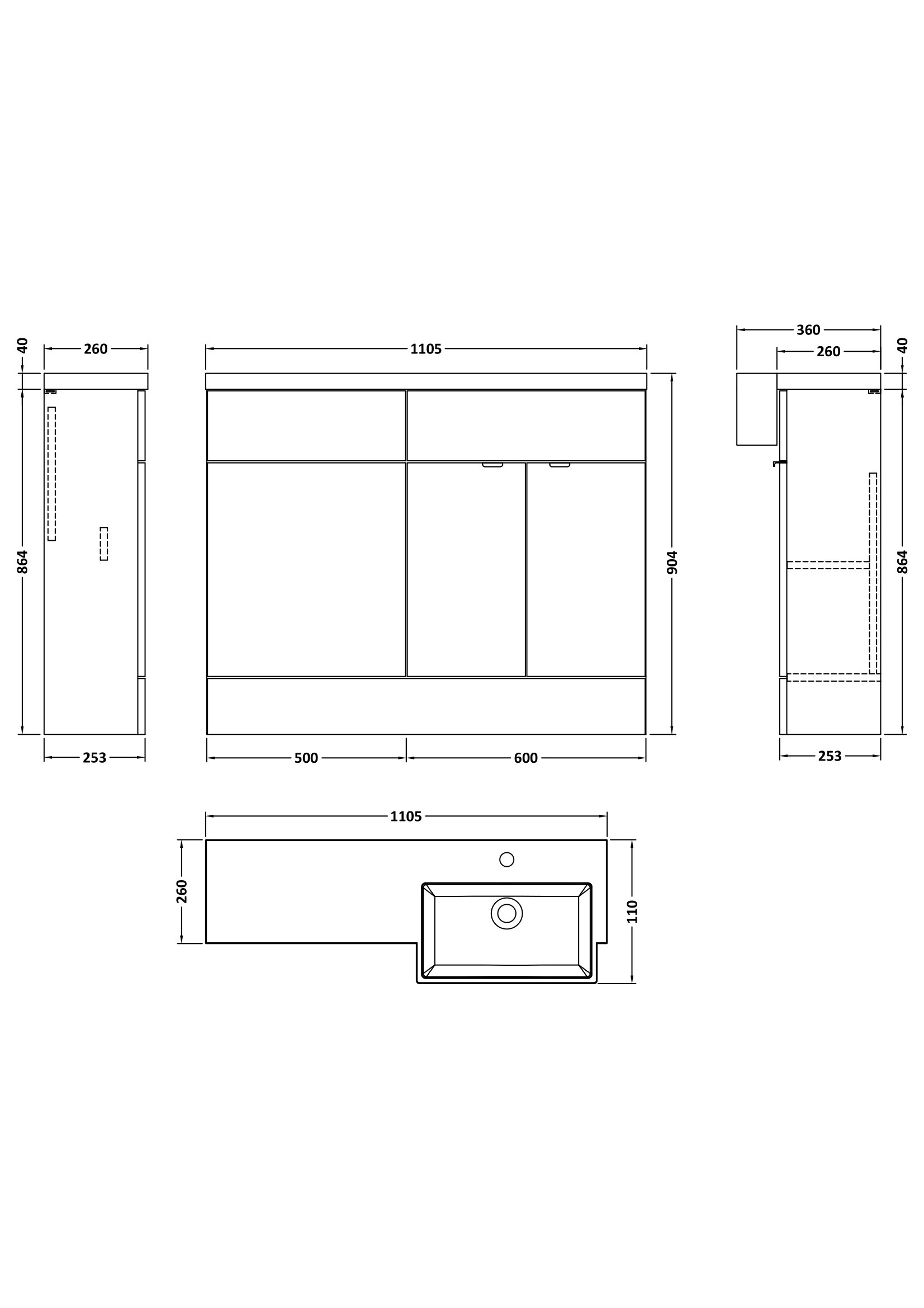 Fusion Floor Standing 2 Door Vanity Unit & WC with Right Hand Semi Recessed Basin Combination 1100mm