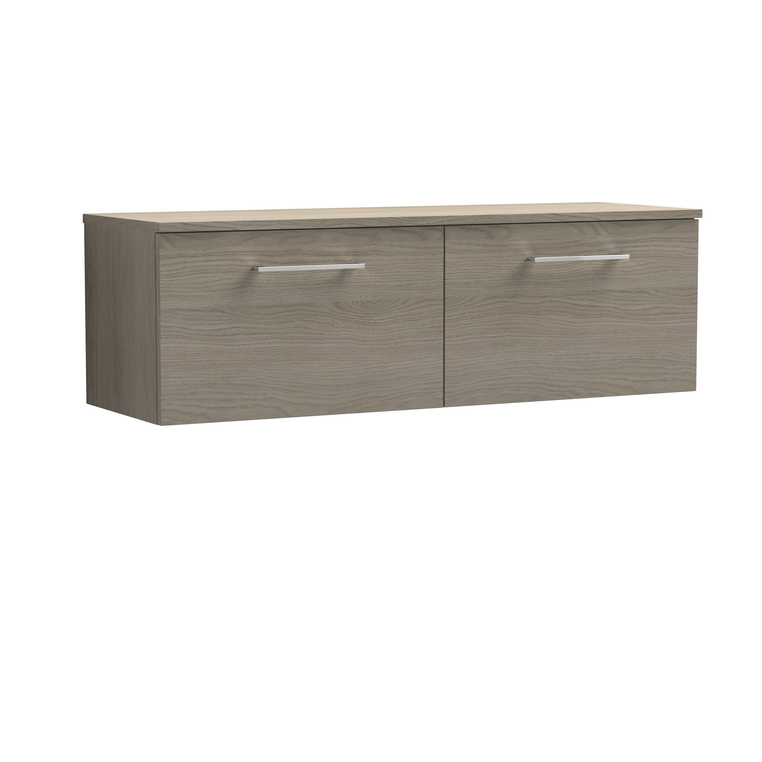 This unique solace oak finish compliments any modern bathroom to create a designer look. This wall hung unit creates more space in your bathroom giving the illusion of a bigger bathroom. This unit has soft close drawers which limits the daily wear and tear and provides a quieter closing action. Colour co-ordinate your unit with a solace oak WC unit. Supplied with worktop..
