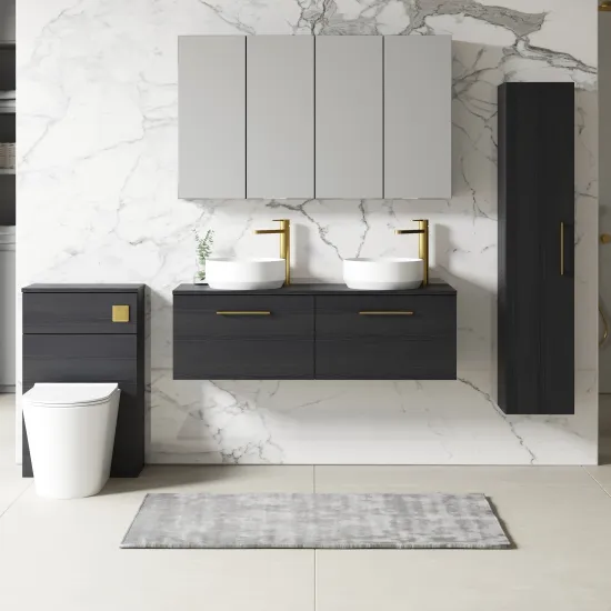nuie Arno 1200mm Wall Hung 2-Drawer Vanity & Worktop - Charcoal Black