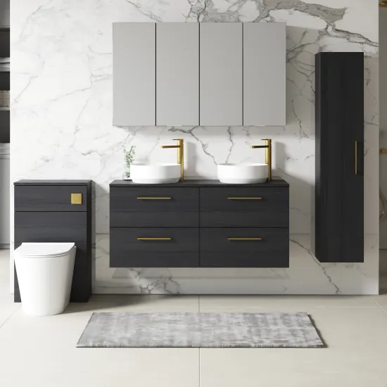 This unique charcoal black finish compliments any modern bathroom to create a designer look. This wall hung unit creates more space in your bathroom giving the illusion of a bigger bathroom. This unit has soft close drawers which limits the daily wear and tear and provides a quieter closing action. Colour co-ordinate your unit with a charcoal black WC unit. Supplied with worktop..