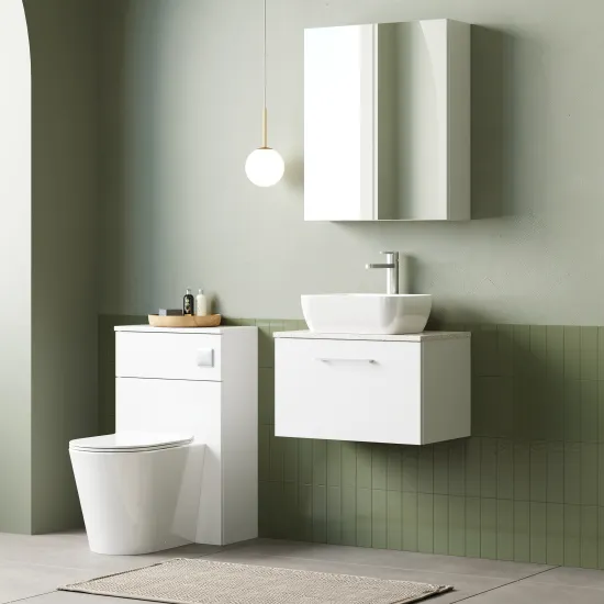 nuie Arno 600mm Wall Hung 1-Drawer Vanity & Laminate Top - Gloss White