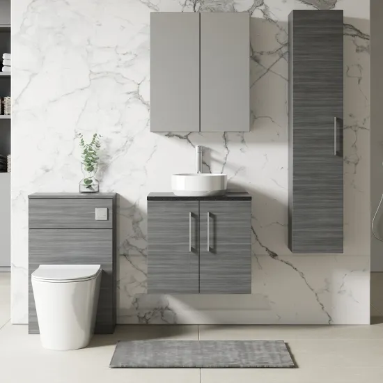 nuie Arno 600mm Wall Hung 2-Door Vanity & Laminate Top - Anthracite