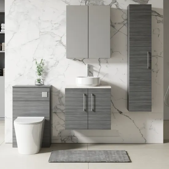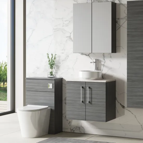 This unique anthracite finish compliments any modern bathroom and creates a designer look. This wall hung unit creates more space in your bathroom giving the illusion of a bigger bathroom. This unit has soft close drawers which limits the daily wear and tear and provides a quieter closing action. Colour co-ordinate your unit with an anthracite WC unit. Supplied with laminate worktop, for use with vessel basins (sold separately).
