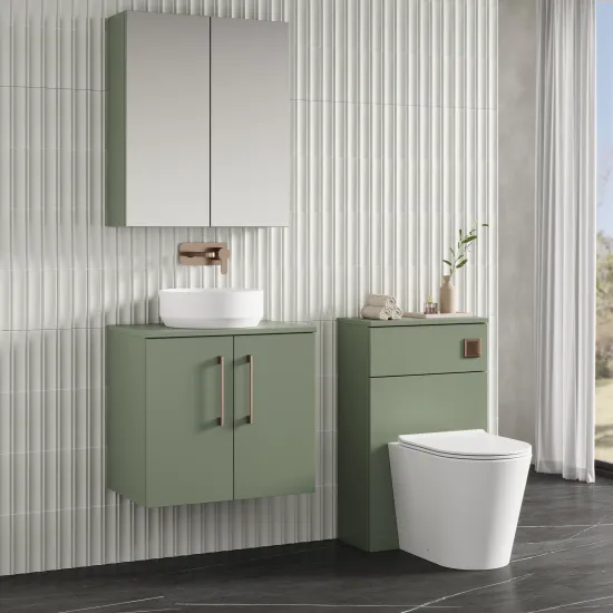 This unique green finish compliments any modern bathroom and creates a designer look. This wall hung unit creates more space in your bathroom giving the illusion of a bigger bathroom. This unit has a soft close door which limits the daily wear and tear and provides a quieter closing action. Colour co-ordinate your unit with a green WC unit. Supplied with worktop.
