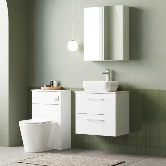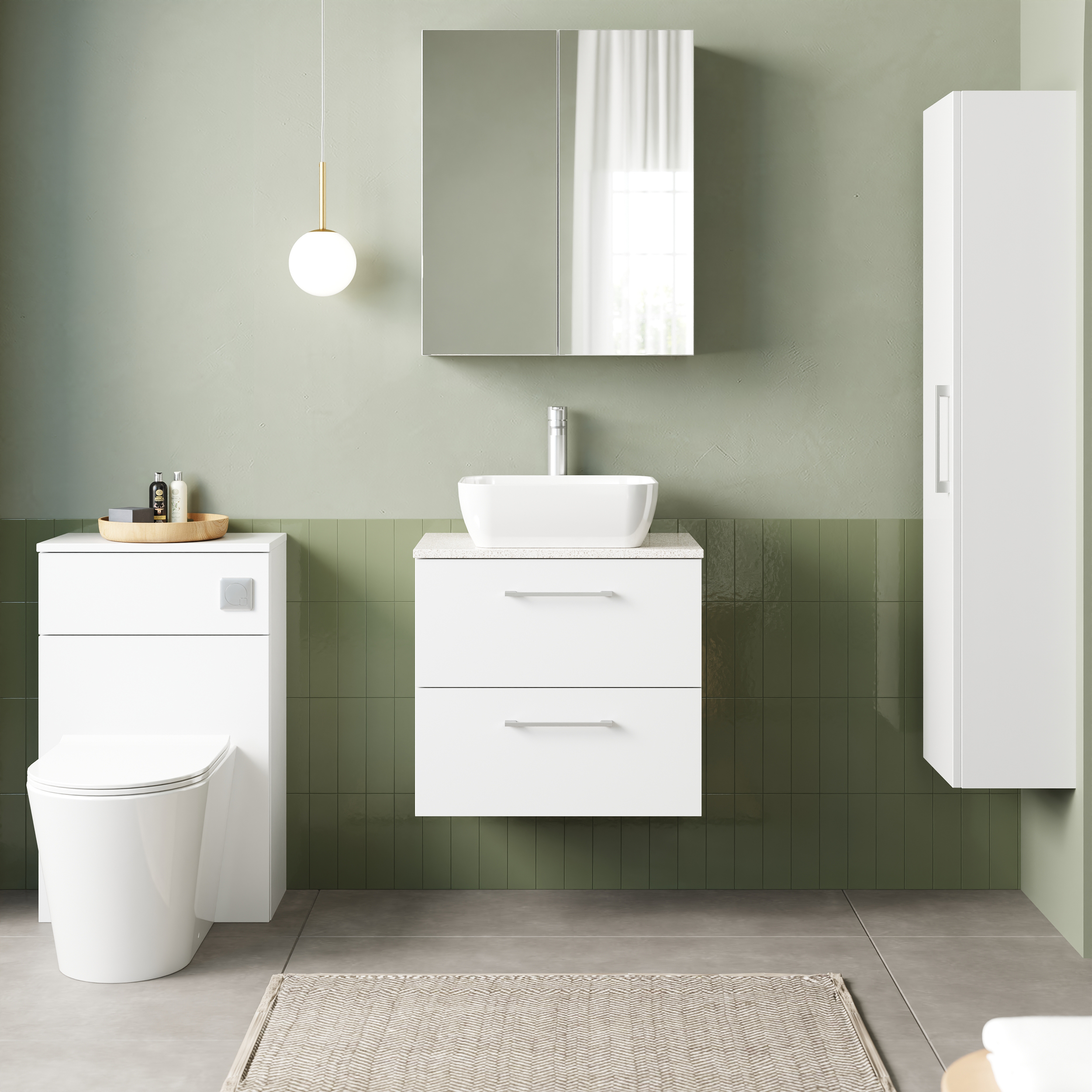 nuie Arno 600mm Wall Hung 2-Drawer Vanity & Laminate Top - Gloss White
