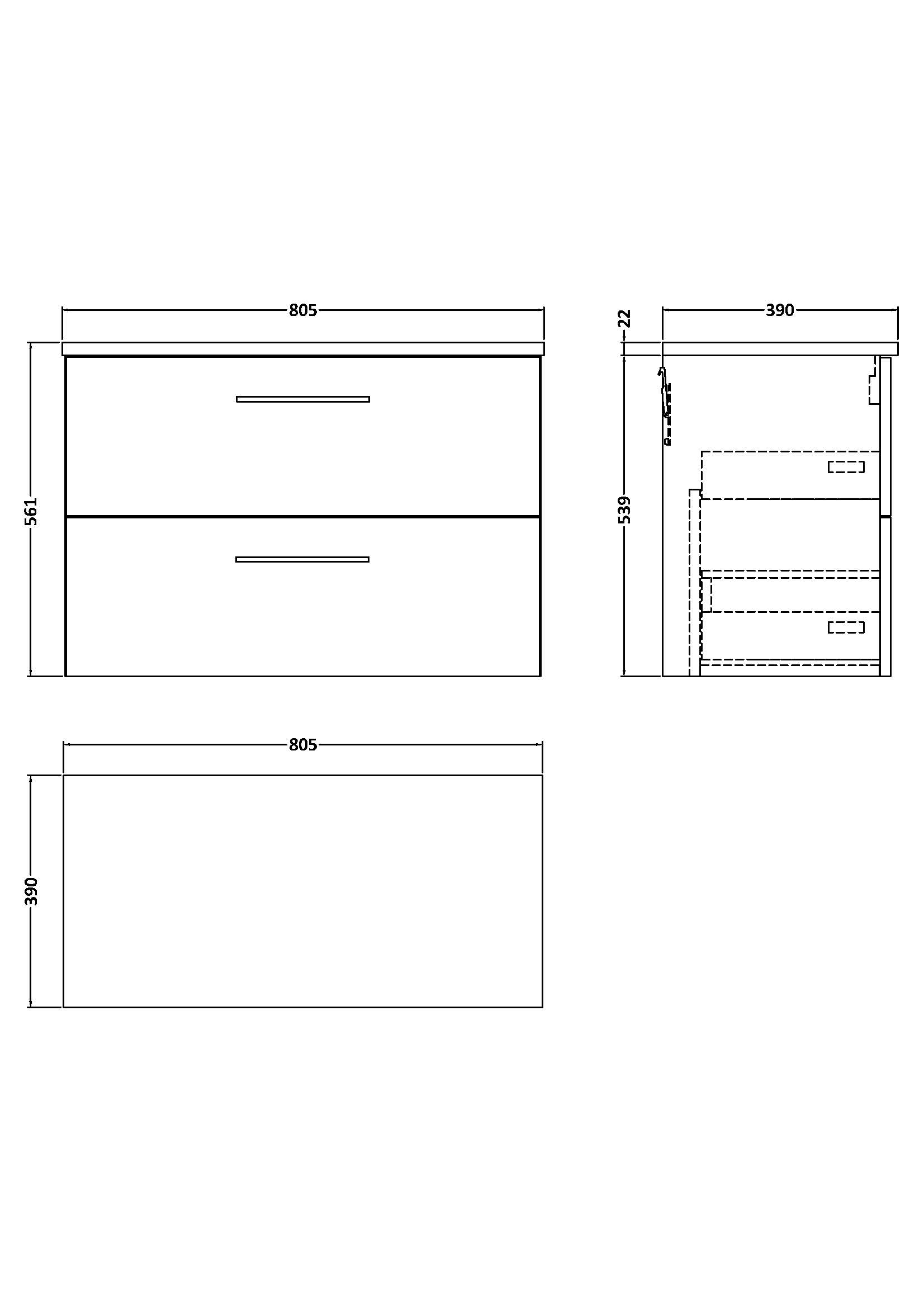 Arno 800mm Wall Hung 2-Drawer Vanity & Laminate Top
