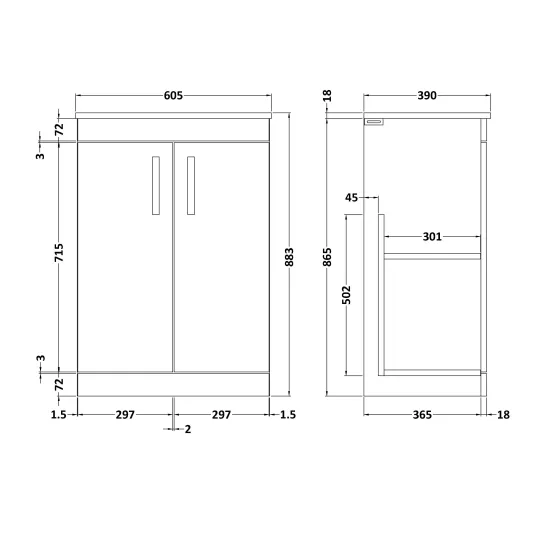 Supplied with high quality matching worktop for use with any of our vessel basins. Vessel sold separately. This sleek gloss white finish compliments any modern bathroom to create a designer look. This floor standing unit gives ample storage, perfect for a busy family bathroom. This unit has soft close doors which limits the daily wear and tear and provides a quieter closing action. Colour co-ordinate your unit with a gloss white WC unit.