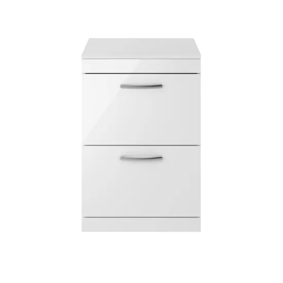 nuie Athena Floor Standing 2 Drawer Vanity With Worktop 600mm - Gloss White
