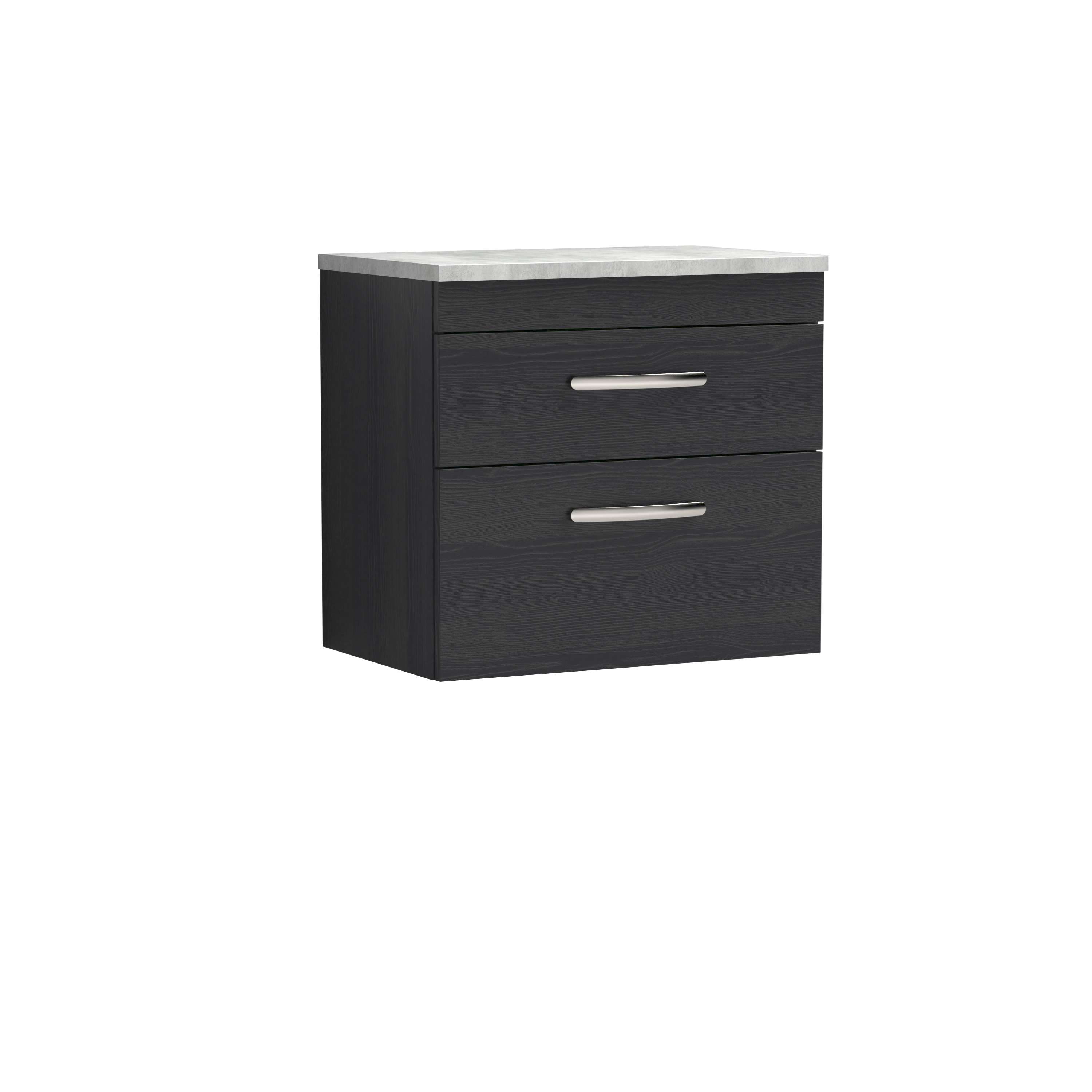 nuie Athena Wall Hung 2 Drawer Vanity With Grey Worktop 600mm - Hacienda Black