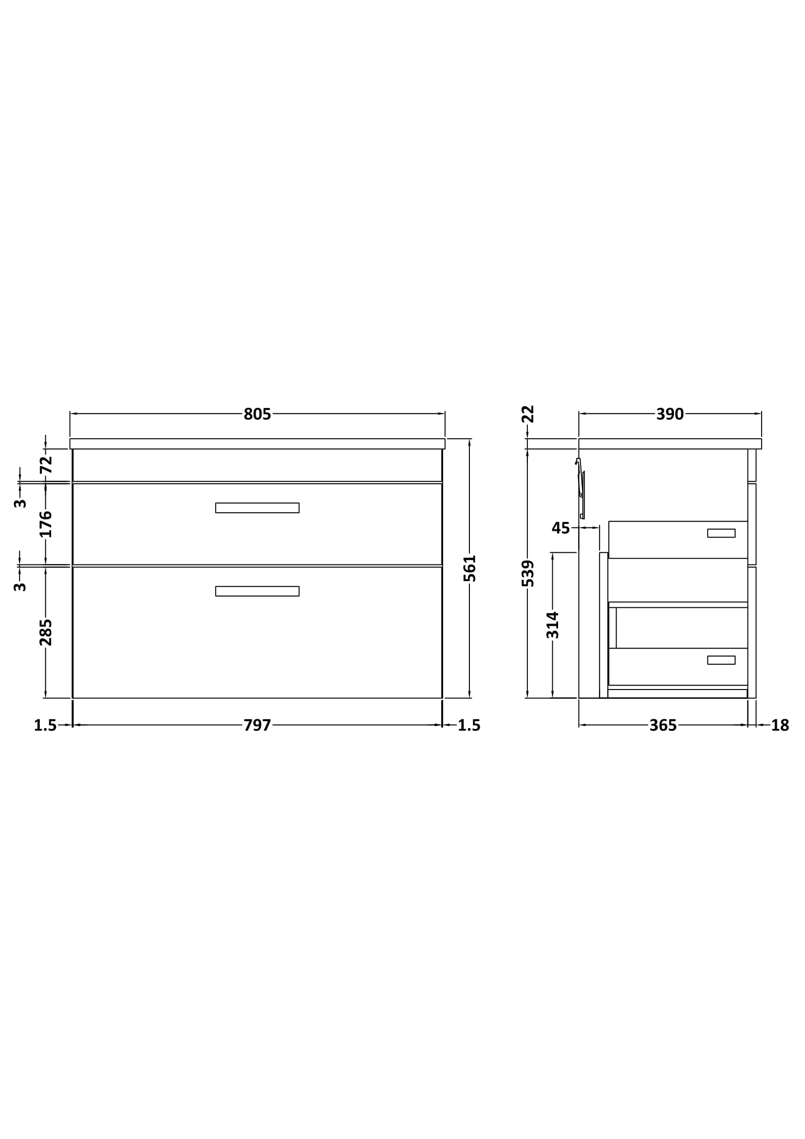 Athena Wall Hung 2 Drawer Vanity With Grey Worktop 800mm