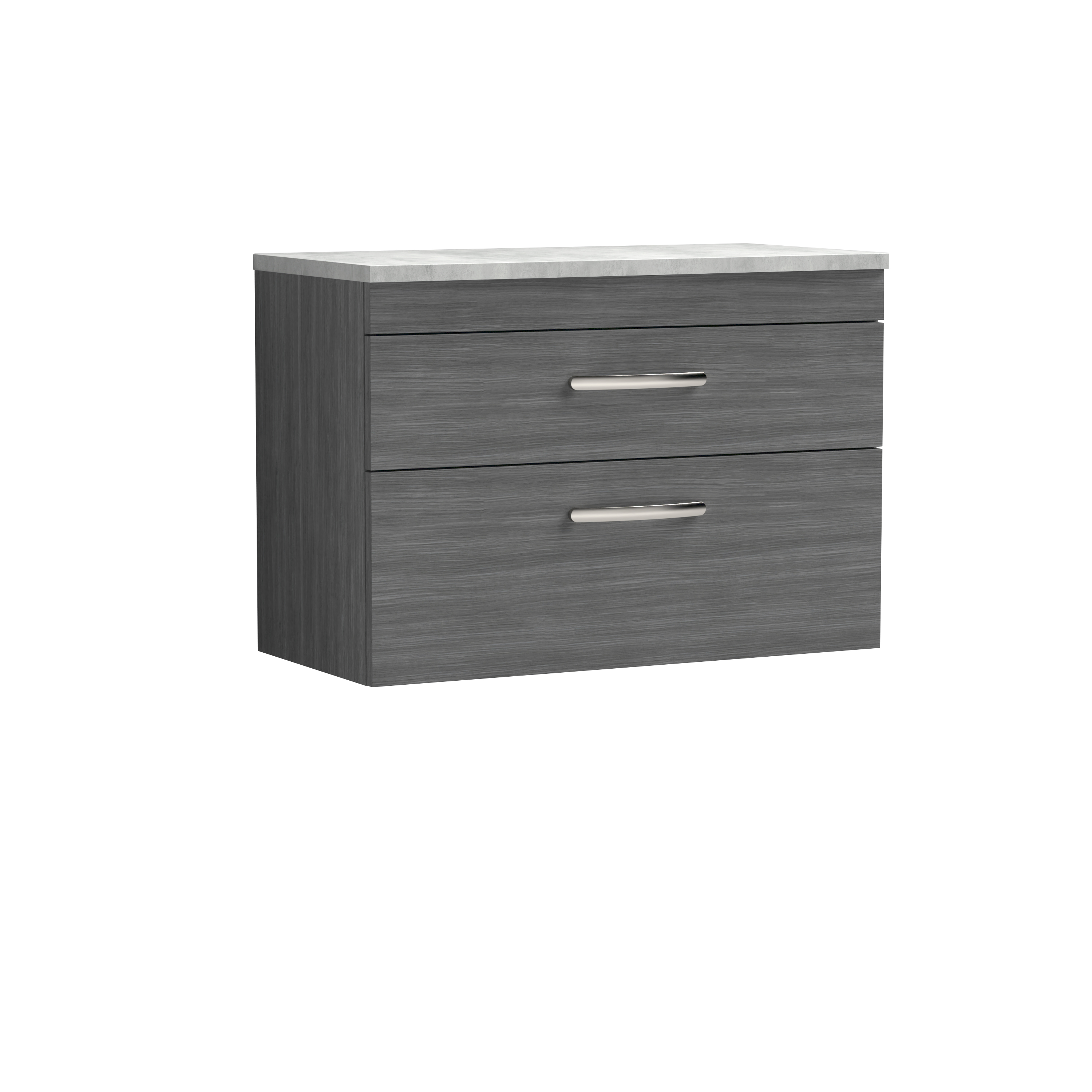 nuie Athena Wall Hung 2 Drawer Vanity With Grey Worktop 800mm - Anthracite Woodgrain