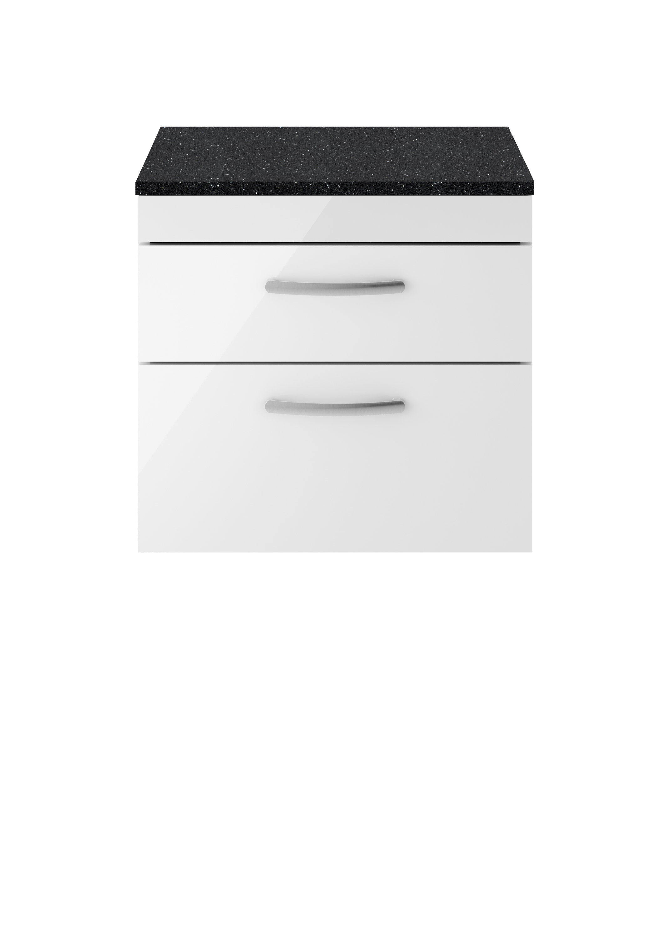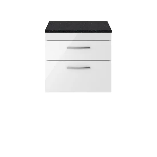 This sleek gloss white finish compliments any modern bathroom to create a designer look. This wall hung unit creates more space in your bathroom giving the illusion of a bigger bathroom. This unit has soft close drawers which limits the daily wear and tear and provides a quieter closing action. Colour co-ordinate your unit with a gloss white WC unit. Supplied with laminate worktop, for use with vessel basin (sold separately).