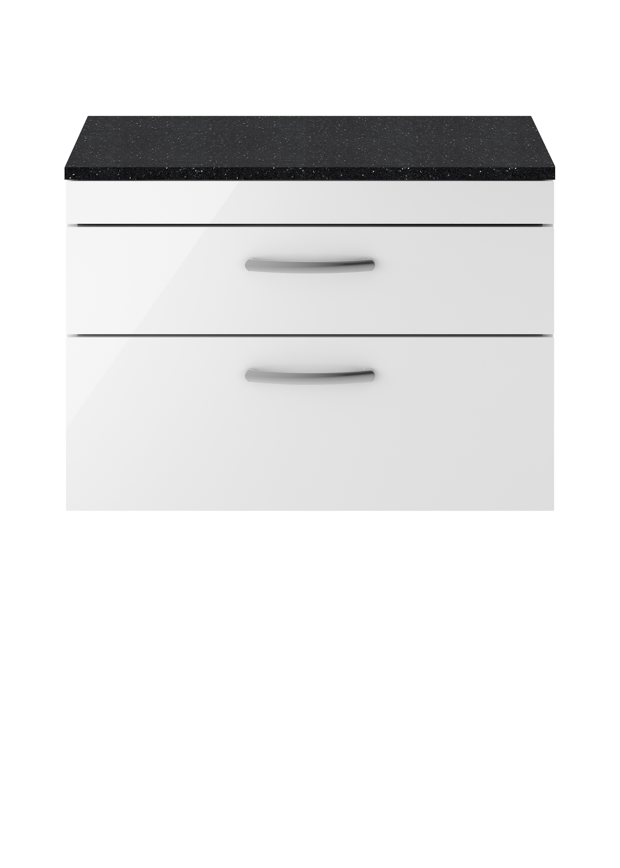 nuie Athena Wall Hung 2 Drawer Vanity With Sparkling Black Worktop 800mm - Gloss White