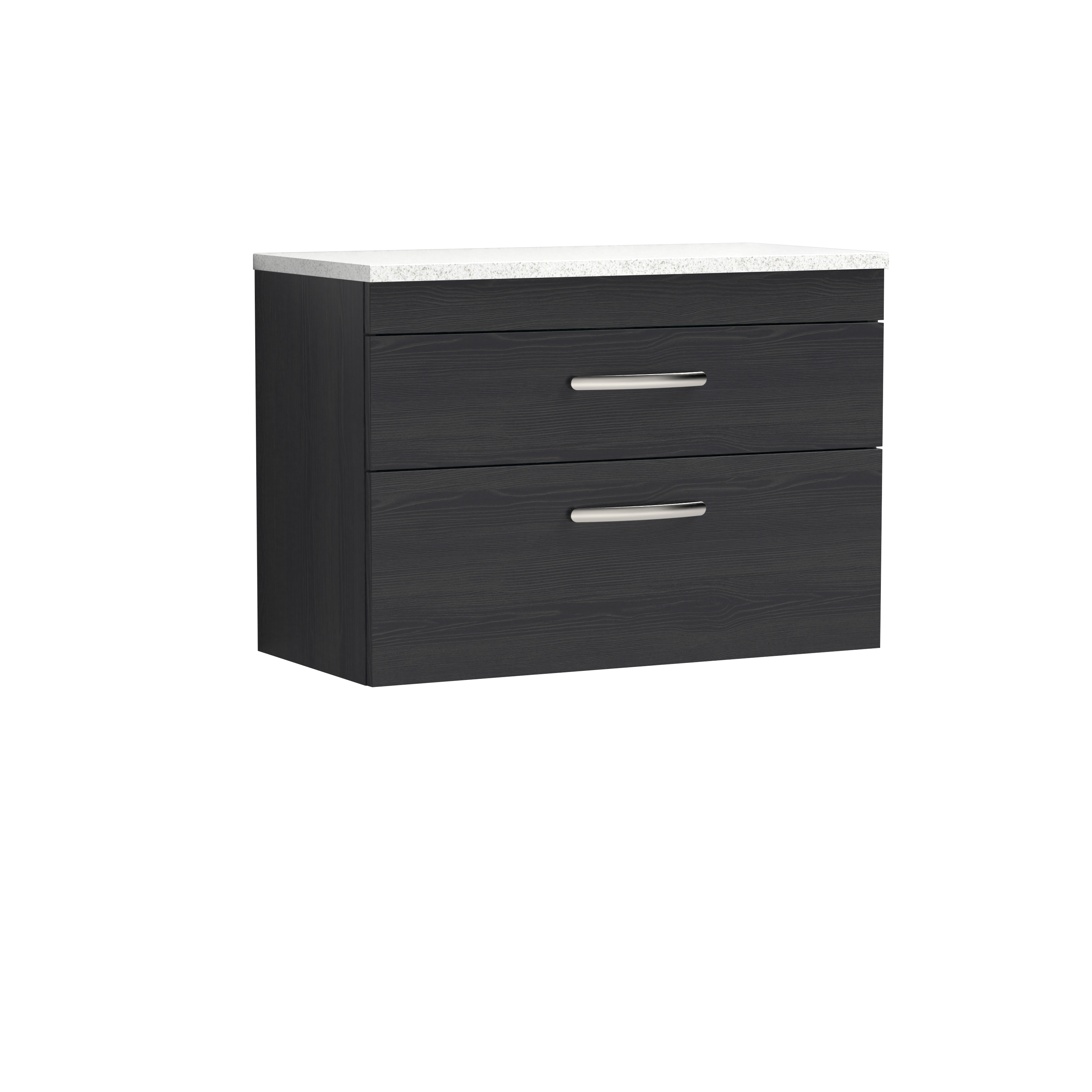 nuie Athena Wall Hung 2 Drawer Vanity With Sparkling White Worktop 800mm - Hacienda Black
