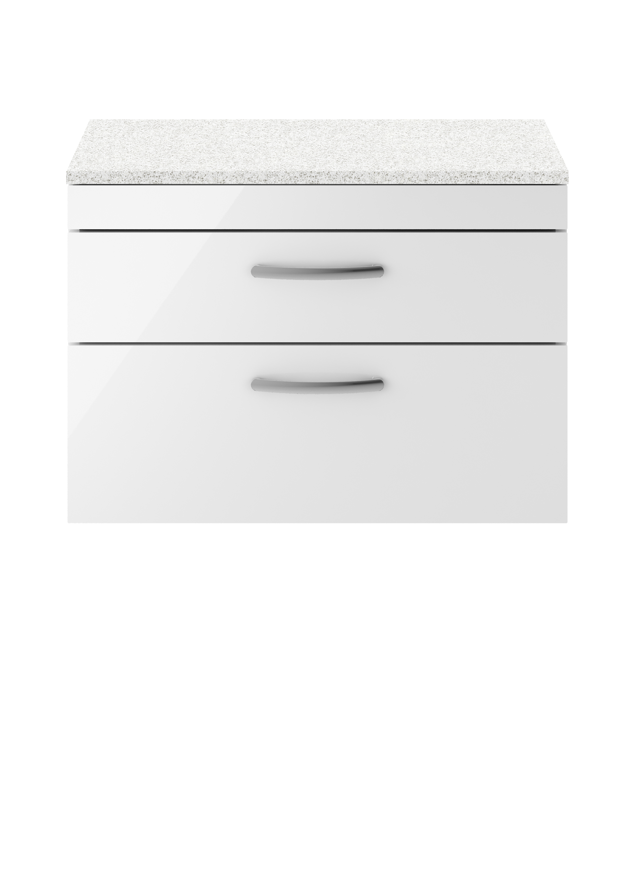 nuie Athena Wall Hung 2 Drawer Vanity With Sparkling White Worktop 800mm - Gloss White