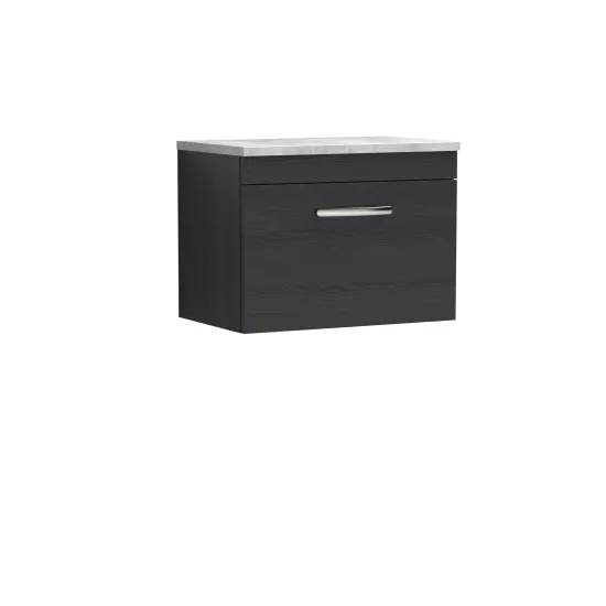Athena Wall Hung Single Drawer Vanity With Grey Worktop 600mm