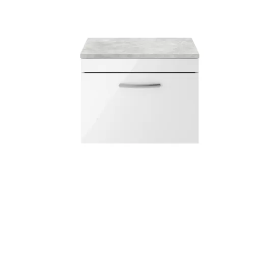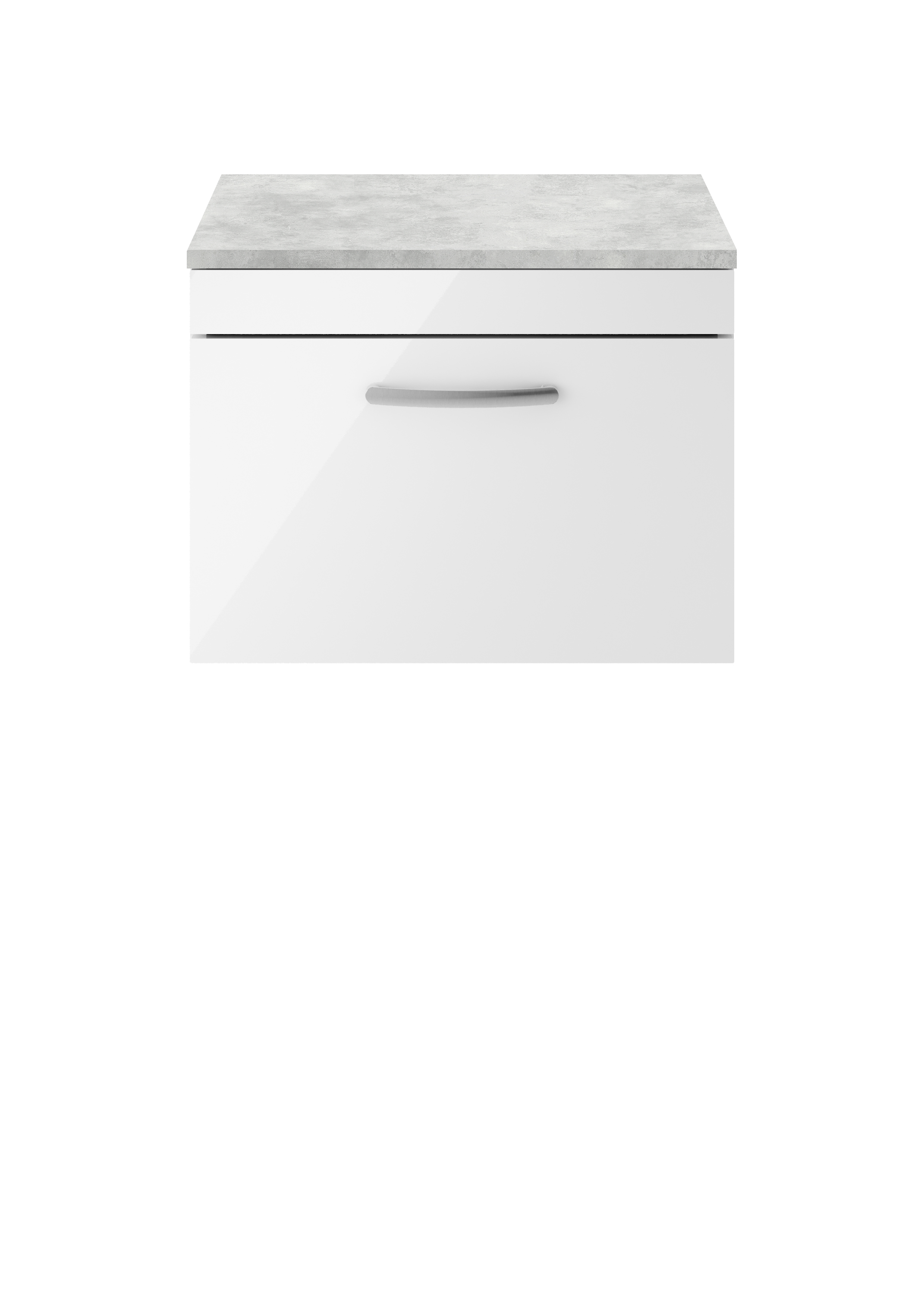 nuie Athena Wall Hung Single Drawer Vanity With Grey Worktop 600mm - Gloss White