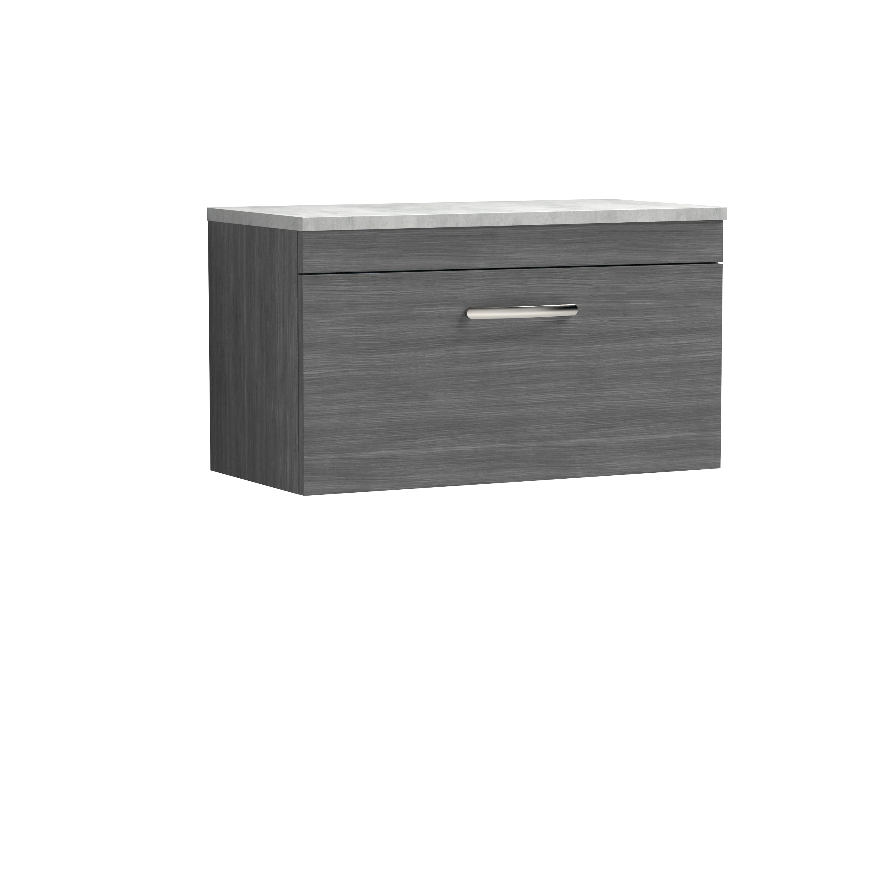 nuie Athena Wall Hung Single Drawer Vanity With Grey Worktop 800mm - Anthracite Woodgrain