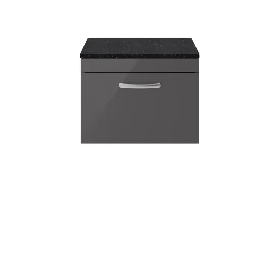 nuie Athena Wall Hung Single Drawer Vanity With Sparkling Black Worktop 600mm - Gloss Grey